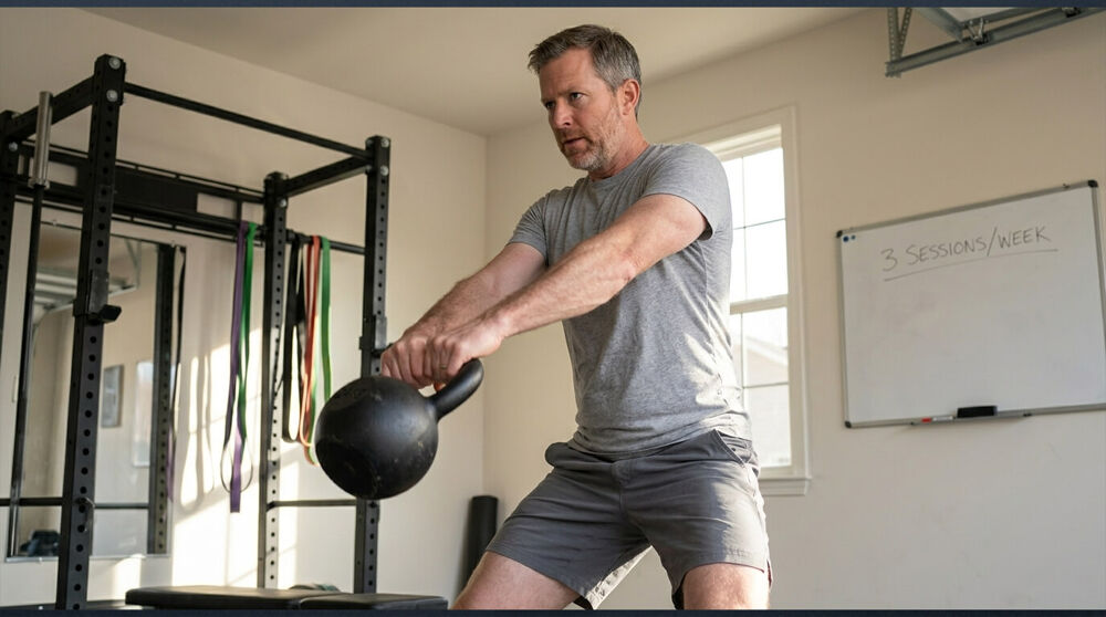 Kettlebells specifically work well here because a single session covers strength, endurance, and movement quality. You're not choosing between lifting and cardio. You're getting both in 35 minutes. And the program travels. Hotel gym, garage, living room floor. The sessions work anywhere, which matters when your schedule doesn't.